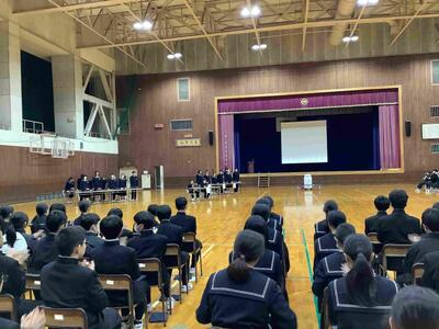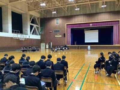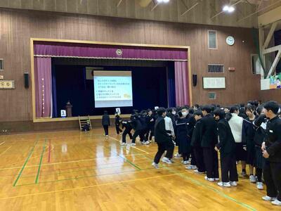 11/18 2学期生徒総会 ブログ 16:40 パブリック 編集者1 本日6限目に2学期生徒総会が行われました。新しい生徒会執行部や各委員長のもと、2学期の活動計画などが話し合われました。よい学校生活を送れるようにみんなで環境を大切に活動に取り組んでいきましょう。 また、総会後に執行部企画のハロウィン集会が行われました。クイズ大会などを行い、全校で楽しく盛り上がりました。