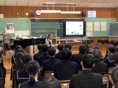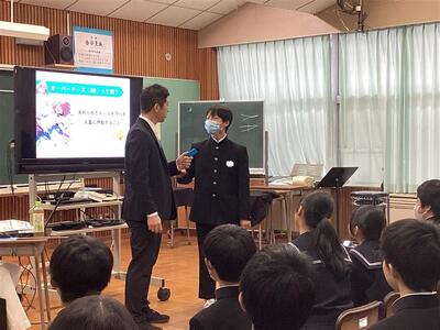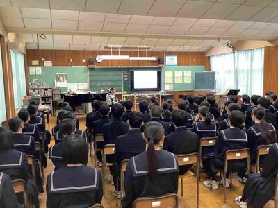 本日、「薬物乱用防止教室」(2年生)が行われました。講師として、学校薬剤師の松崎先生に来ていただきました。薬物の危険性などについて、いろいろな資料をもとに分かりやすく話をしてくださいました。また、ロールプレイングで薬物使用の勧誘をどのように断るとよいかといったことなどを学びました。中学生が巻き込まれるニュースなども目にする時がありますので、今日学んだことを忘れずに、これからもしっかり考えて判断していってほしいと思います。
