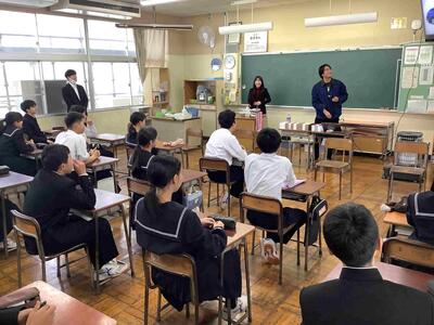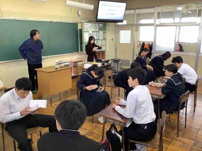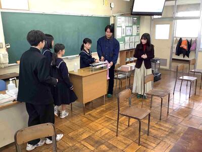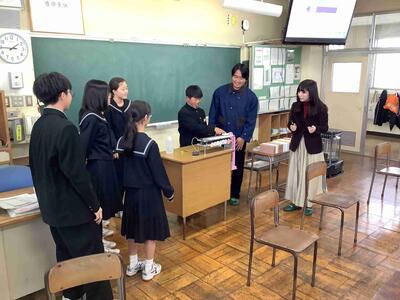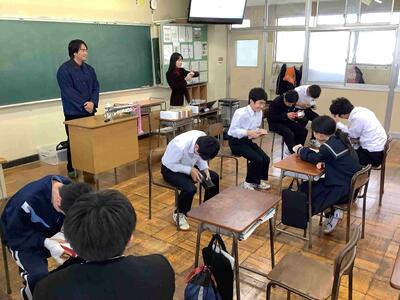 本日は、福井高専の出前授業が行われました。福井高専の学生の方が講師として来てくださり、「摩擦」について授業をしてくれました。「摩擦の熱を測定しよう」や「摩擦で指紋の年齢を知ろう」といったおもしろい実験があり、とても楽しく活動する様子が見られました。クイズや実験を通して、身近な摩擦について体験・学習することができたと思います。福井高専の先生や学生の方々、楽しい授業ありがとうございました。