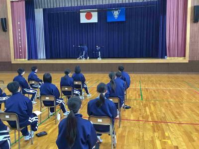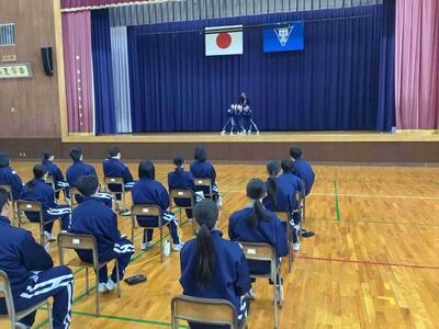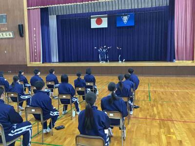 1/20 体育 ダンス発表(2A、2B ) ブログ 01/20 パブリック 編集者1 本日、2Aと2Bのそれぞれの体育の授業で、ダンスの発表が行われました。 これまでグループで動きなどを話し合い、練習してきました。どのグループも動きに工夫をこらしたダンスを披露していました。楽しそうに踊る姿も見られましたね。練習の成果がしっかり発揮できたのではないかと思います。 <2Aの発表会の様子> <2Bの発表会の様子>