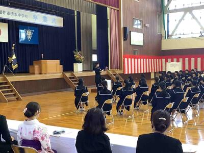 3年生の保護者の皆様、お子様のご卒業おめでとうございます。本校の教育活動に多大なるご支援、ご協力をいただき、心から感謝申し上げます。お子様のさらなる成長をお祈り申し上げます。また、今後も清水中学校をどうぞよろしくお願いいたします。