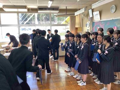 3年生のみなさん、ご卒業おめでとうございます。中学校生活で学んだことがたくさんあると思います。ぜひ、これからにつなげてください。そして、これからも多くのことを学び、経験していってください。今後のみなさんの活躍を期待しています。